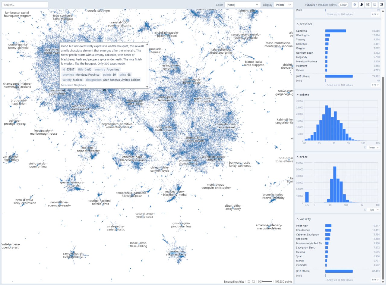 You can use Embedding Atlas directly from this website by loading your own data. Embedding Atlas will compute the embedding and projection in your browser. Your data does not leave your machine.